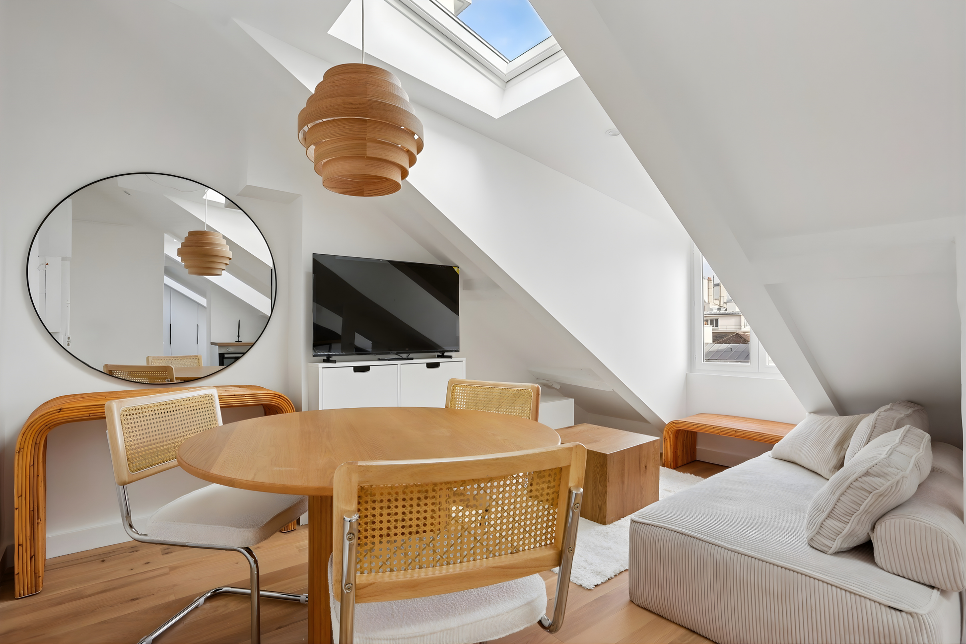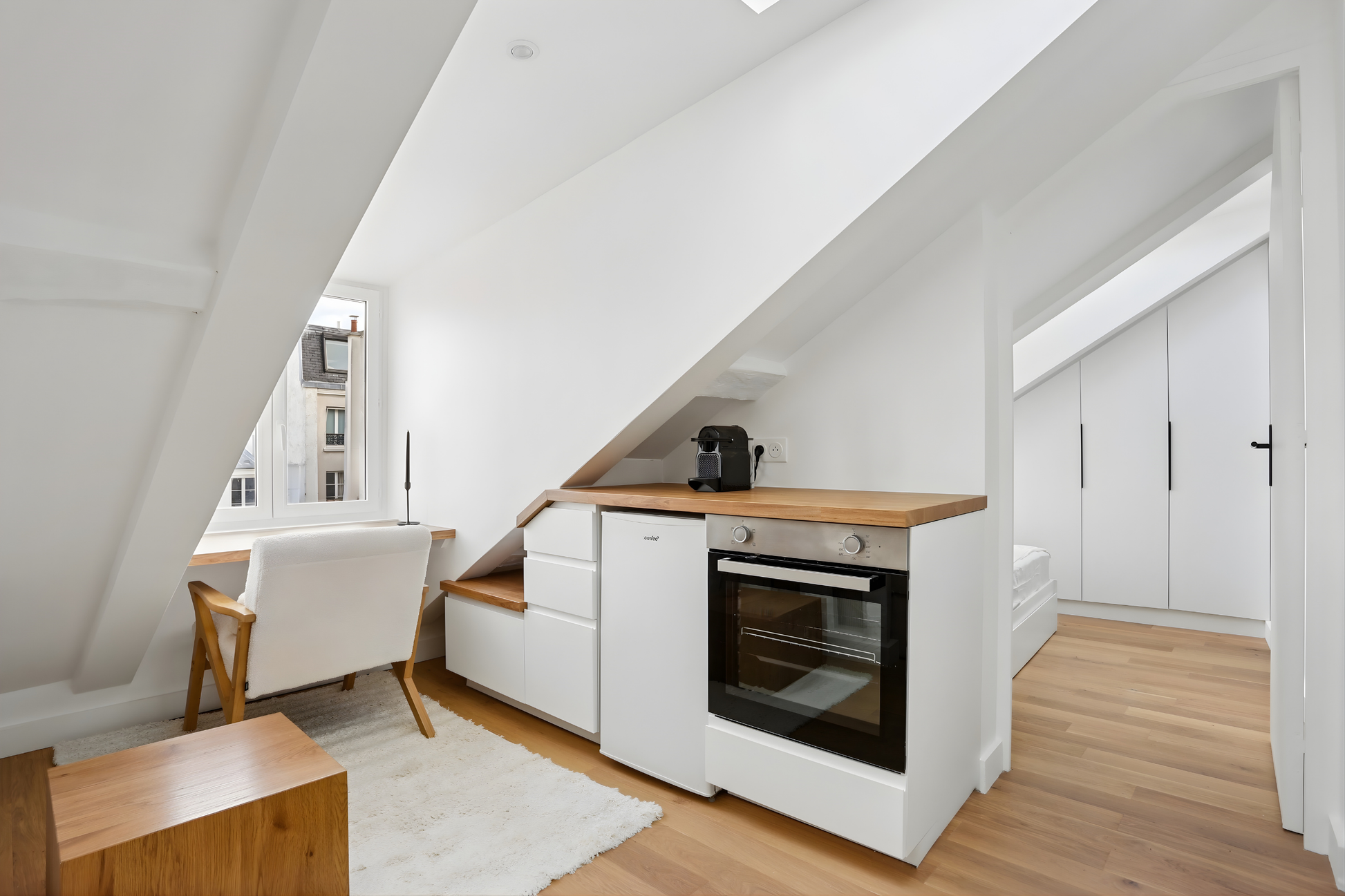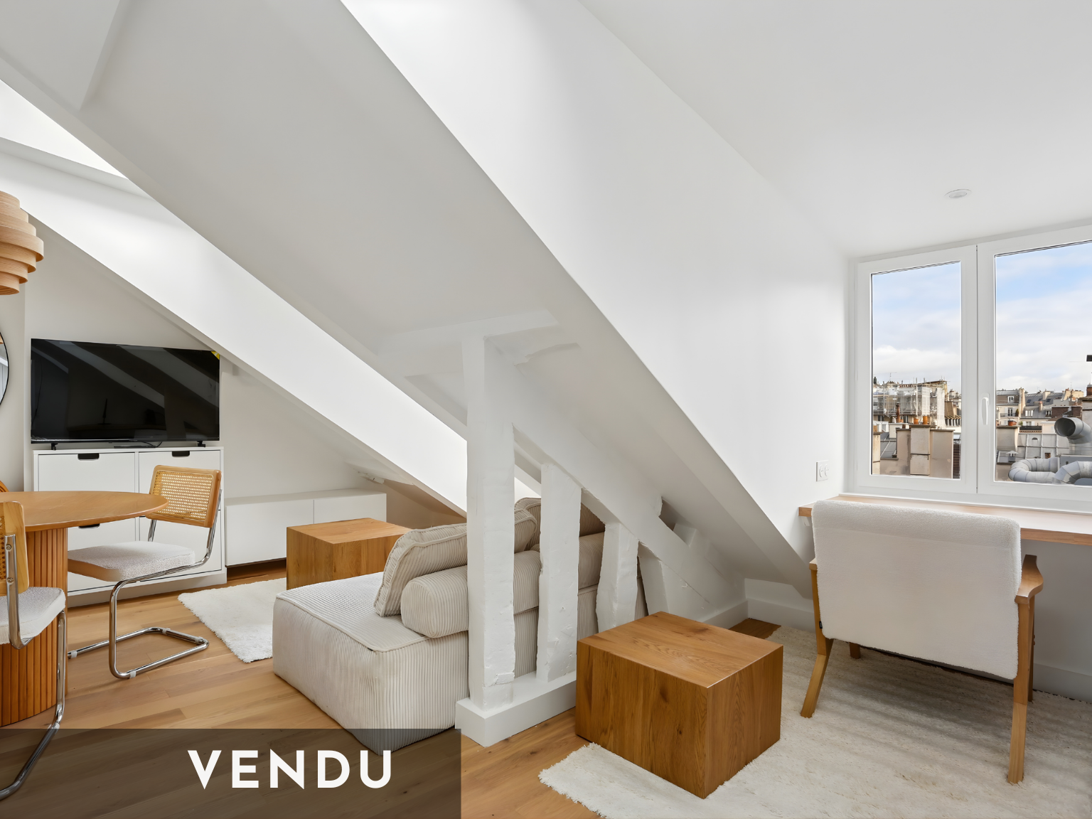Cet appartement vous garantit un calme absolu et une luminosité maximale grâce à ses 3 ouvertures zénithales ainsi que 3 belles fenêtres.